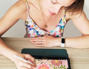 Due to lack of space and the amazing simplicity I mostly paint digitally on Procreate nowadays. This way I don’t need to scan and edit, I create the repeat patterns right there in the program, then export it to my computer. It’s also easy to transport, allowing me to create anywhere without having boxes of art supplies. Don’t get me wrong I love traditional watercolour and acrylics – nothing can compare to feeling the brush strokes across the paper – but due to lack of space and time Procreate is more ideal for now.